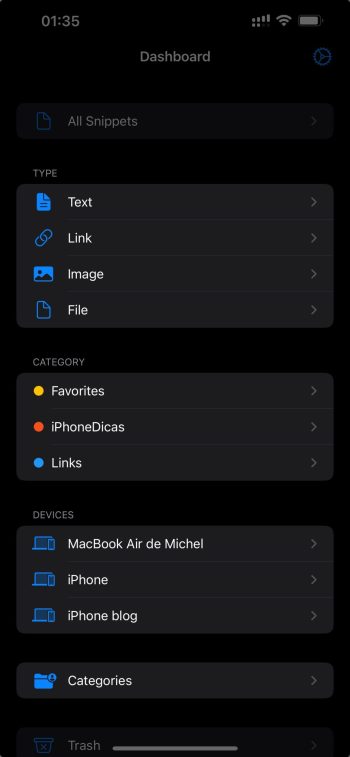 Esse aplicativo é um gerenciador avançado para a área de transferência, com sincronização em nuvem (via iCloud), opções de organização por etiquetas, sincronização automática em 2º plano, teclado personalizado, privacidade, widgets, integração com o app Atalhos, lixeira e muito mais. Ele oferece suporte universal aos dispositivos Apple, permitindo que você tenha itens para acesso rápido do histórico da área de transferência no iPhone, Mac e iPad.