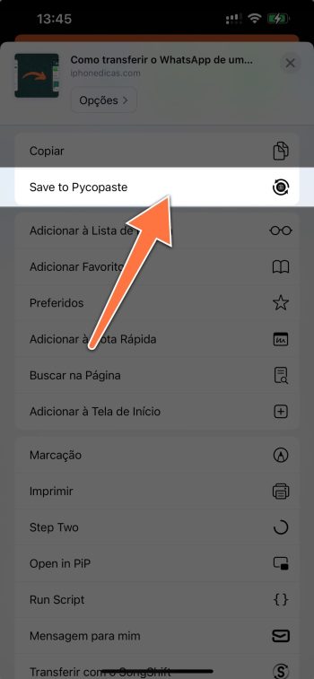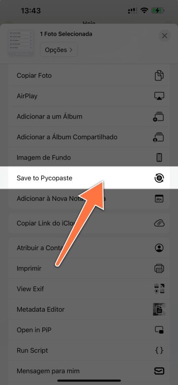 O Pycopaste oferece suporte ao aplicativo Atalhos, permitindo que você crie automações e processos integrados com o “histórico” da Área de Transferência. Também é possível adicionar um novo clipe diretamente pelo menu de compartilhamento.