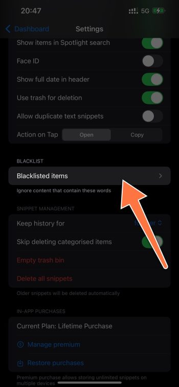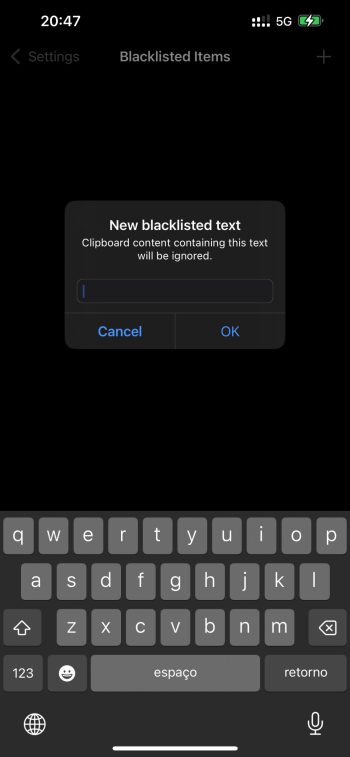 Você também pode definir palavras e termos específicos nas configurações do Pycopaste para que, ao copiar algo que contenha essas palavras, o aplicativo ignore e não salve em seu histórico.