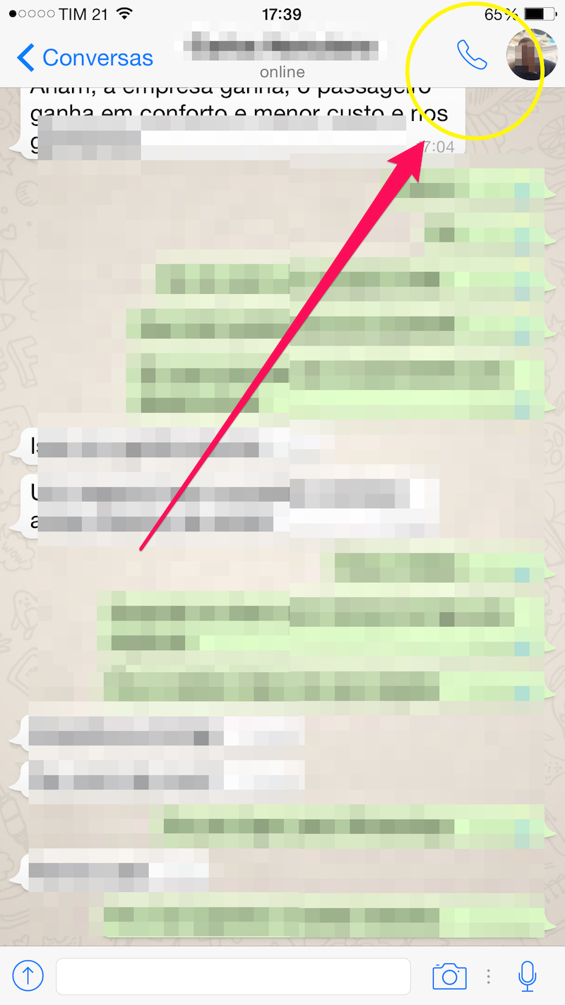 Tudo é muito simples. Na janela de conversa, normalmente, vai ter um botão de telefone ao lado da imagem de perfil. Basta tocar ali e pronto, a ligação será feita.