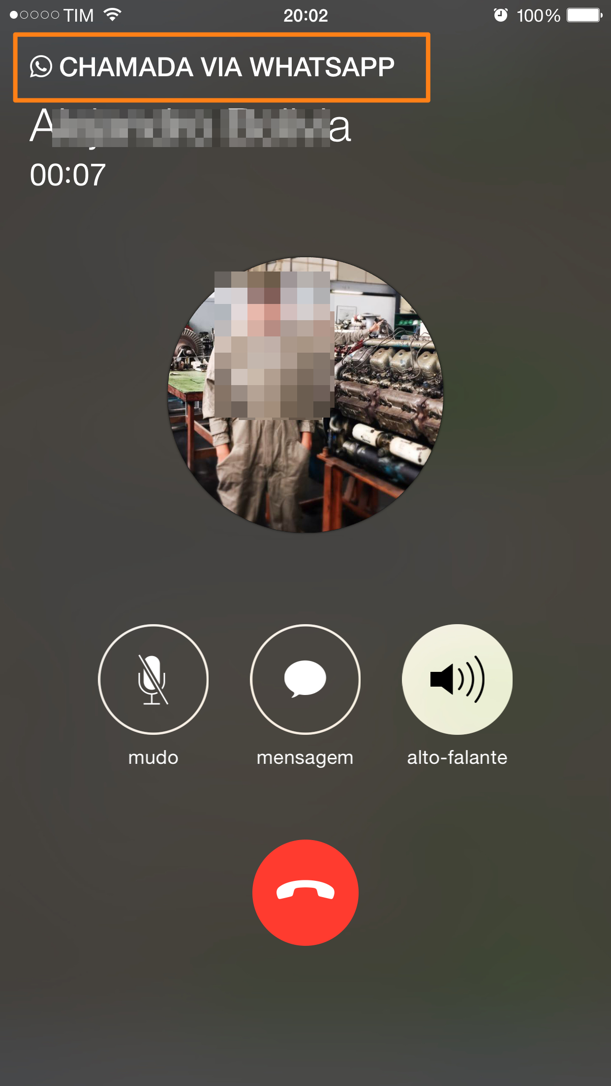 A ligação pelo WhatsApp é muito fácil de reconhecer, pois essa informação aparece no topo da tela.