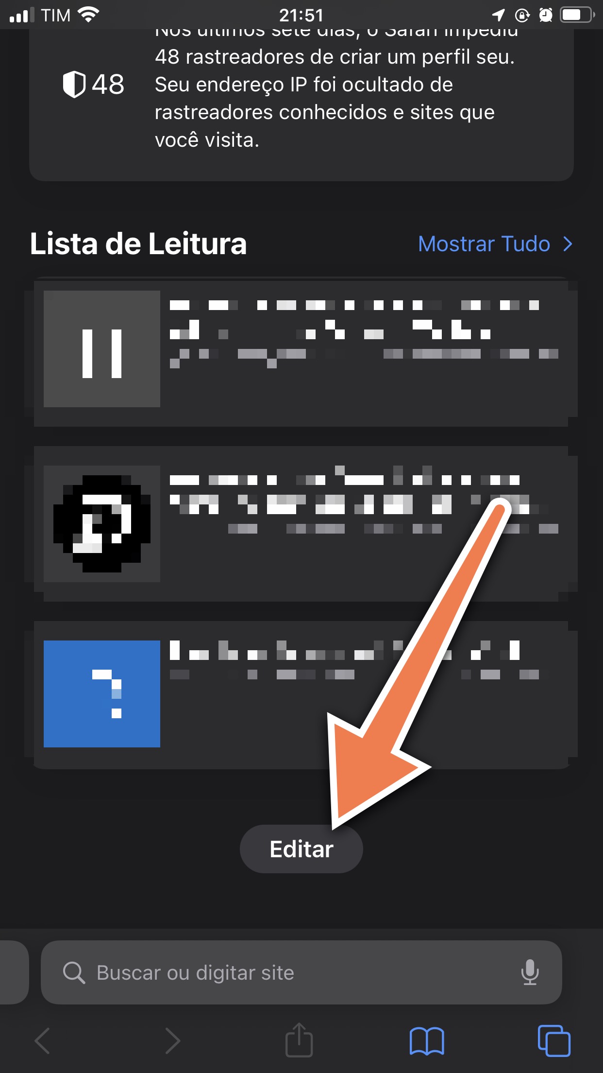 Outra possibilidade adicionada ao Safari no iOS 15 é a personalização da guia inicial, na qual se pode até adicionar uma imagem de fundo, além de escolher quais itens devem aparecer na “aba vazia”. Para isso, abra uma nova guia em branco e deslize até o final da tela. Depois, toque em “Editar”, conforme a imagem abaixo: