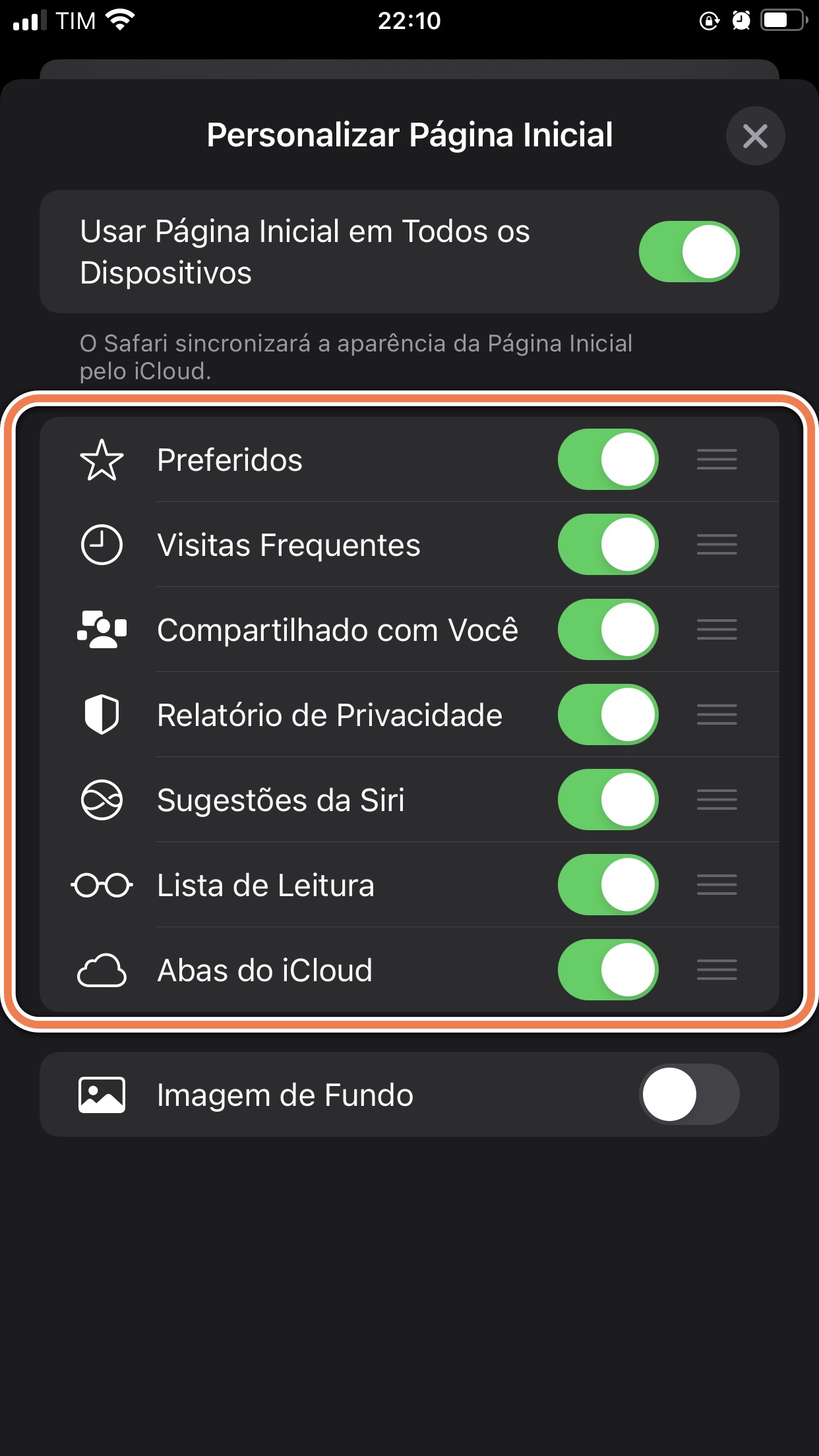 Personalizando a imagem de fundo e itens da tela inicial do Safari no iPhone