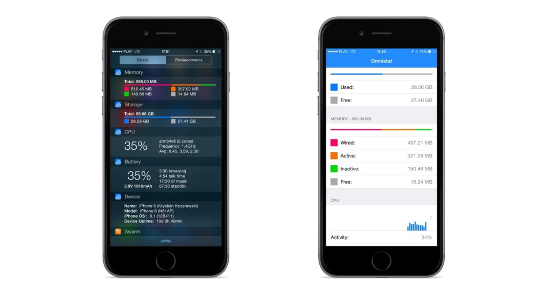 Mas, se você é que nem a gente, que gosta de saber tudo o que está acontecendo no iOS, recomendamos o aplicativo Omnistat, que com um funcionamento bem simples e direto mostra o status do seu iPhone, através de várias informações pertinentes do sistema, que são: dispositivo, Wi-Fi, rede móvel, armazenamento, RAM, CPU e bateria. Além disso, ele possui um widget na área de notificações extremamente util.