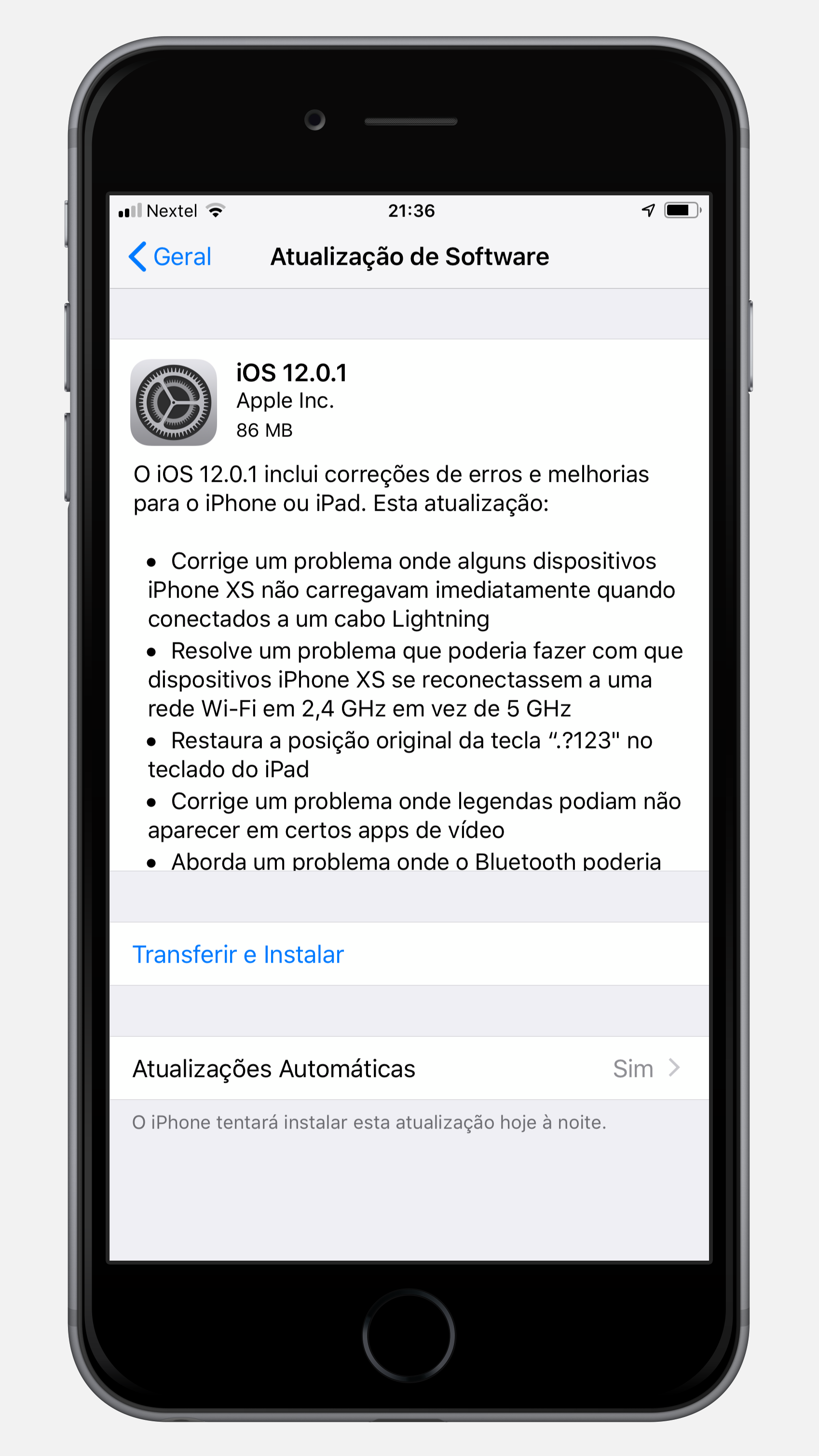 O iOS 12.0.1 inclui correções de erros e melhorias para o iPhone ou iPad. Esta atualização: